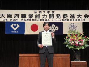 新着情報 TOP新着情報 技能検定成績優秀者知事賞受賞 技能検定成績優秀者知事賞受賞 令和6年度国家技能検定金属プレス技能士(金属プレス作業)1級を取得した弊社従業員が優秀な成績で有ったため令和7年度大阪府職業能力開発促進大会で知事賞の授与を受けました。 2025年11月13日