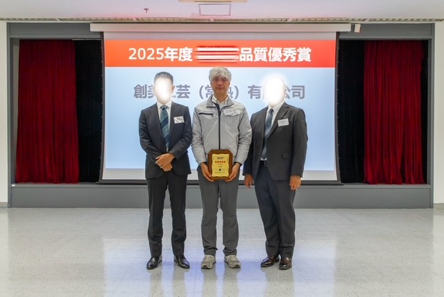 新着情報 TOP新着情報 お客様より品質優秀賞を頂きました お客様より品質優秀賞を頂きました 弊社、中国工場の創美工芸(常熟)有限公司がお客様より2025年度品質優秀賞を頂きました。 2026年04月10日